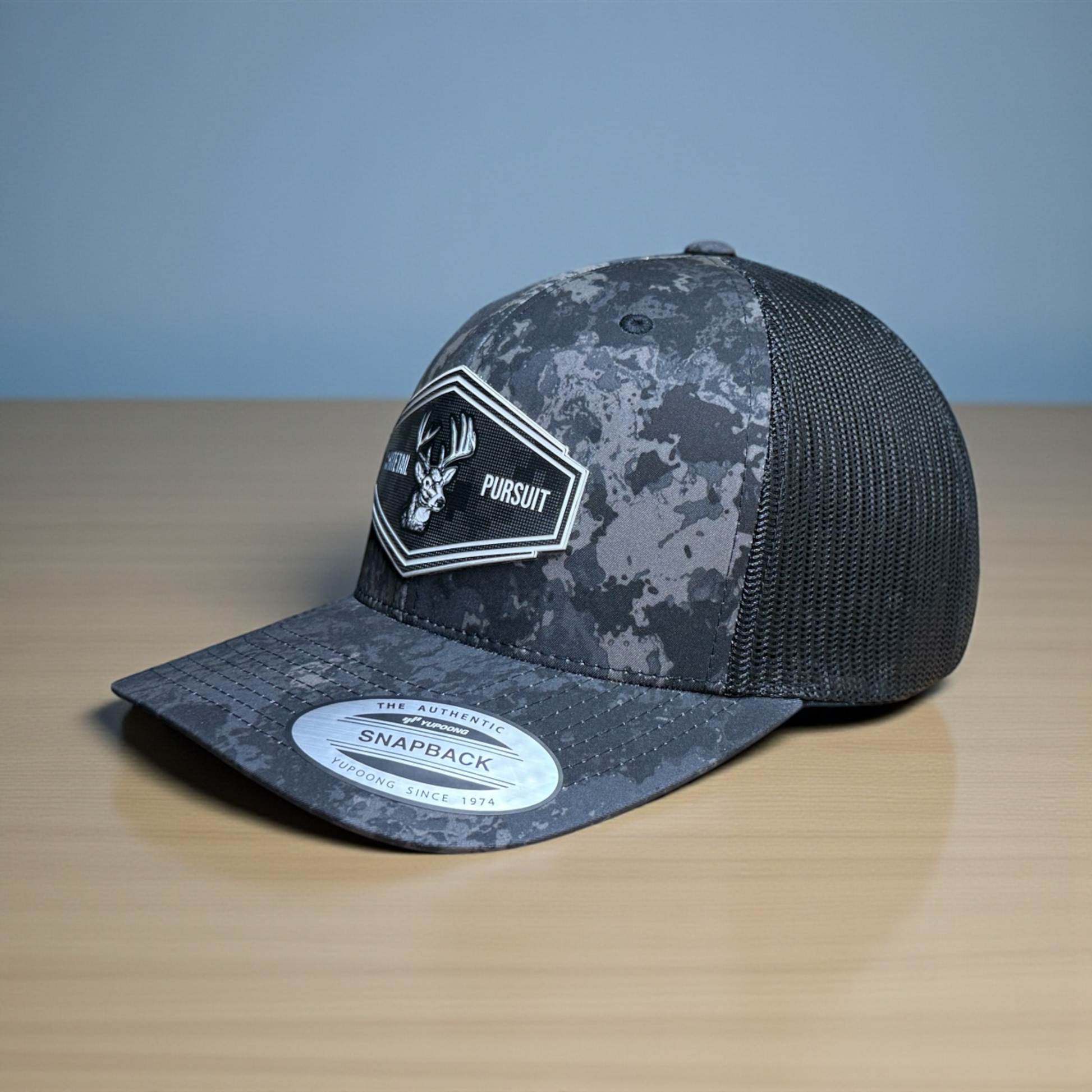 Stay stealthy in style with this Whitetail Pursuit edition hat, built on the premium Yupoong 6606 trucker platform. Featuring a custom tri-layer acrylic Whitetail Pursuit patch with a bold style, this hat blends performance, comfort, and rugged outdoor appeal.